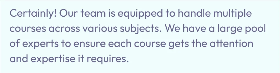 Live chat Live chat More Info Live chat What services does Tutordegree offer? Is it safe to use Tutordegree services? What if I'm not satisfied with the work provided? How does Tutordegree guarantee quality and authenticity? How quickly can I expect a response from your team? Can Tutordegree handle multiple courses at the same time?